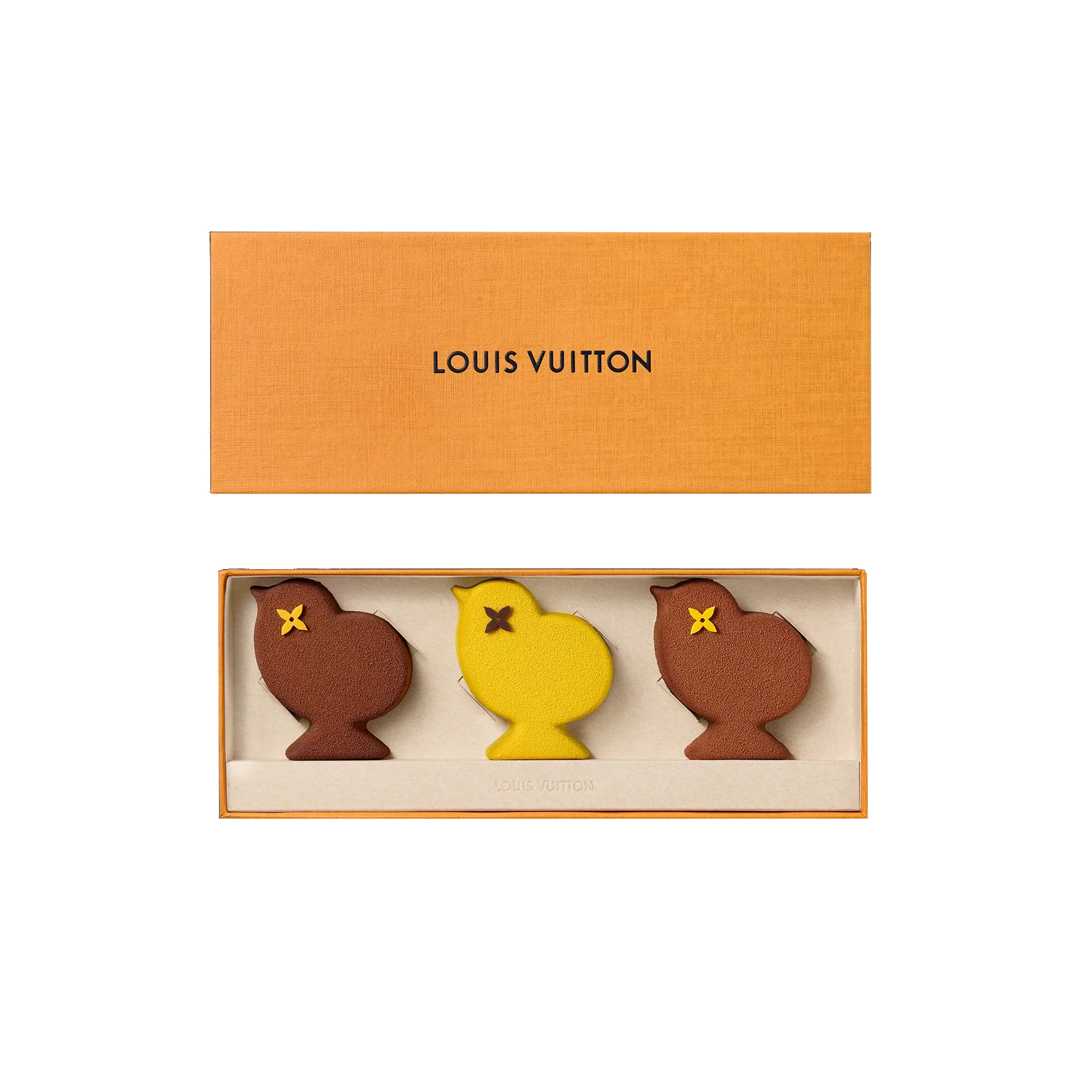 Celebrate Easter with a touch of luxury through the exclusive chocolate collection by Maxime Frédéric for Louis Vuitton. The Coffret of 3 Chocolate Chicks is a refined, limited-edition creation that combines playful design with haute pâtisserie excellence.